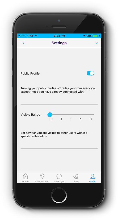 Set how often you'd like to be reached. Control visibility and limit your public profile. Easy customization for your current daily needs or purpose.